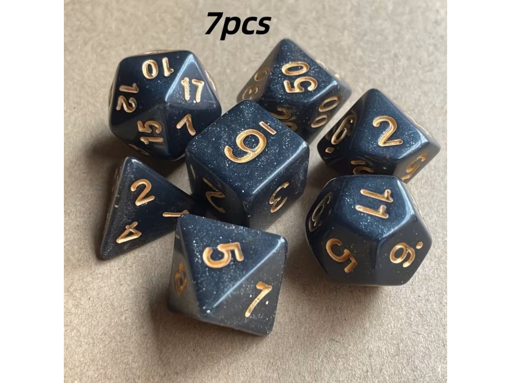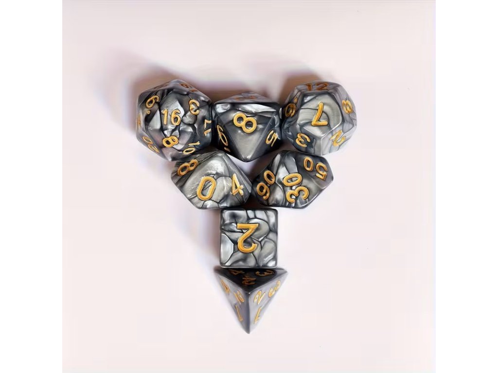 Balení obsahuje 1 čtyřstrannou (D4), 1 šestistrannou (D6), 1 osmistrannou (D8), 2 desetistěnnou (D10 a D10%), 1 dvanáctistrannou (D12) a 1 dvacetistrannou kostku(D20).