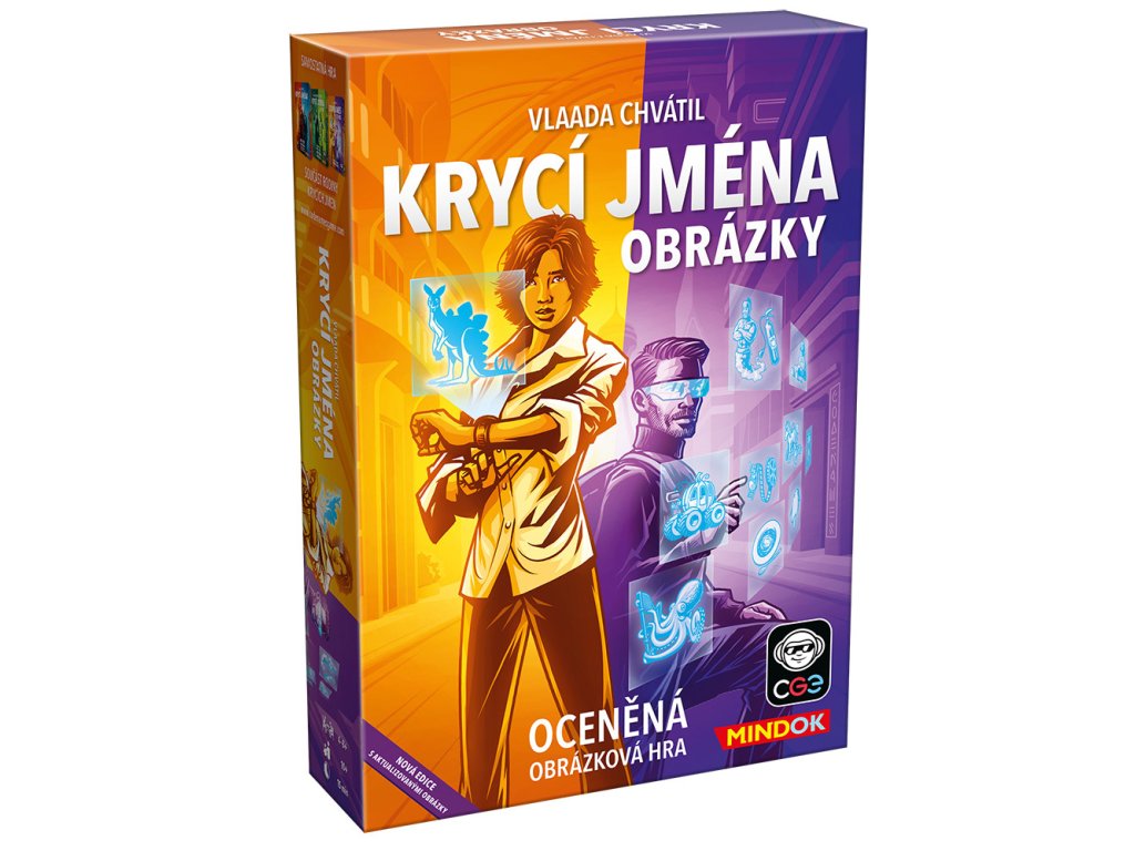 Krycí jména: Obrázky je nová, samostatně hratelná verze výborné a oceňované párty hry Vládi Chvátila, která u nás vyšla pod názvem Krycí jména. Nová verze se hraje velmi podobně, jen na kartičkách na stole nenajdete slova, ale obrázky. V této verzi je tak většinou snadnější napovídat a propojovat jednotlivé karty asociacemi. Vůbec nepochybujeme o tom, že i tato verze si získá srdce mnohých hráček a hráčů :-)