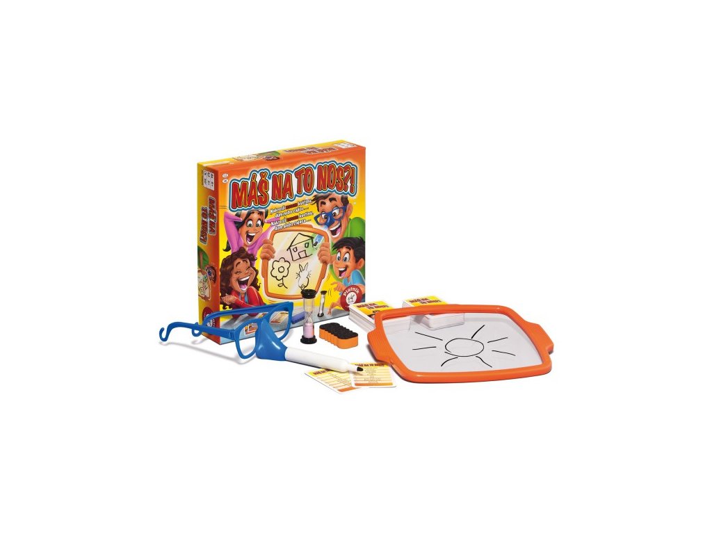 Nasaďte si brýle a začínáme. S prodlouženým nosem nakreslete na průhlednou kreslící tabulku co nejvíce obrázků tak, aby je váš tým uhodl. A to dřív, než vyprší stanovený čas, proto jsou v balení přesýpací hodiny. Tak se dají získat body a vyhrát! Rychlá párty zábava pro dva týmy o libovolném počtu hráčů nebo tři jednotlivé hráče, kteří pak soupeří mezi sebou.