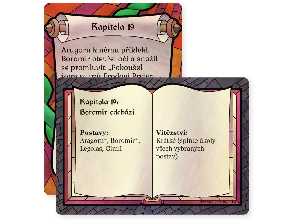 Vraťte se do úchvatného světa Středozemě ve štychové karetní hře! Smíšek a Pipin jsou uneseni skřety, zatímco Frodo nese Prsten k Hoře osudu. Vypravte se s Frodem a Samem do Mordoru a s Aragornem a jeho společníky do Fangornského lesa a Rohanu, spolupracujte, moudře zahrajte své karty a splňte úkoly všech postav.