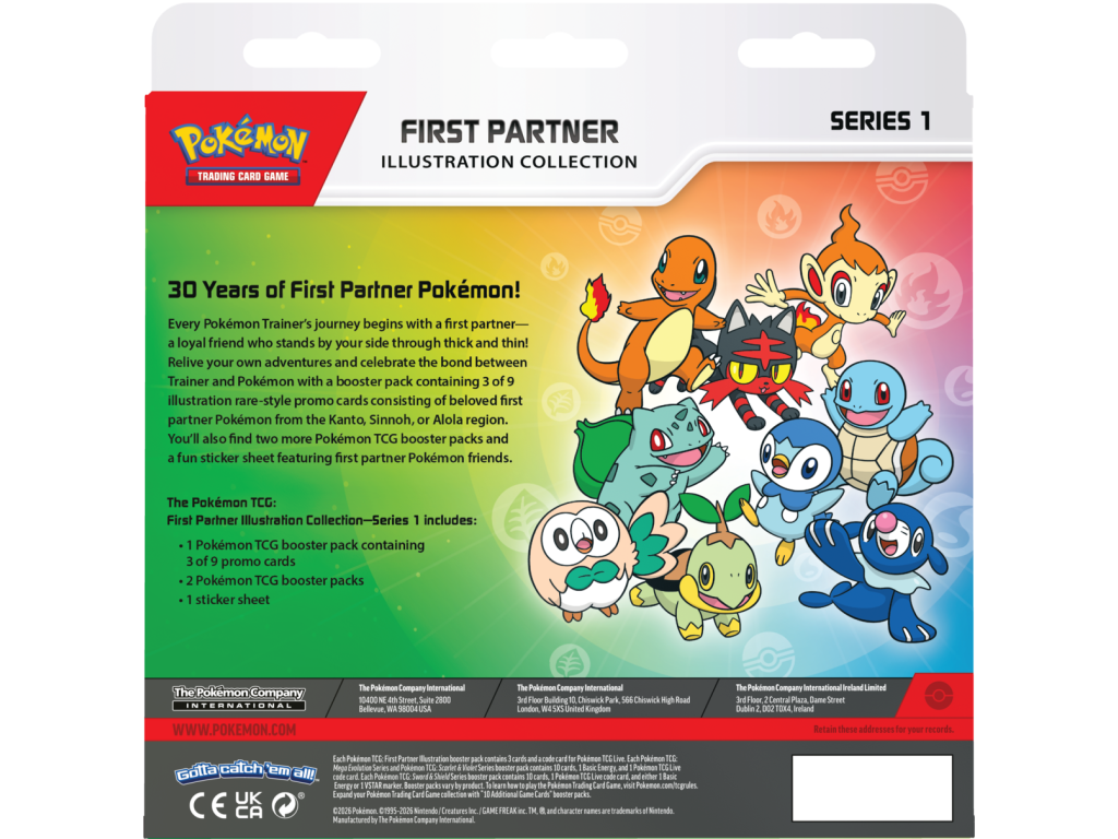 Každé velké dobrodružství začíná těžkým rozhodnutím – kterého Pokémona si vybrat jako prvního? First Partner Illustration Collection (Series 1) oslavuje legendární trojice z různých regionů. Tato unikátní sběratelská sada vám umožní získat speciální promo karty s nádhernými ilustracemi, které v klasických boosterech nenajdete. Ideální kousek pro ty, kteří chtějí mít své první parťáky pohromadě!