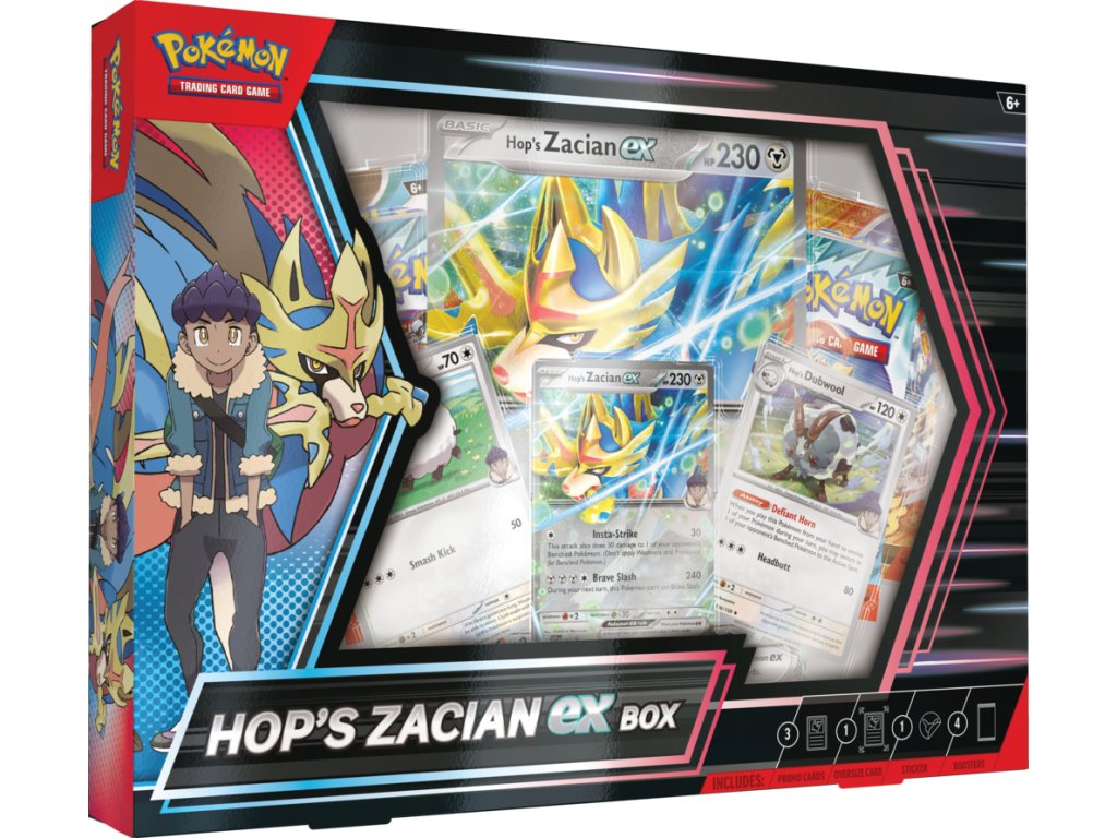Balení Pokémon Hop’s Zacian ex Box obsahuje: