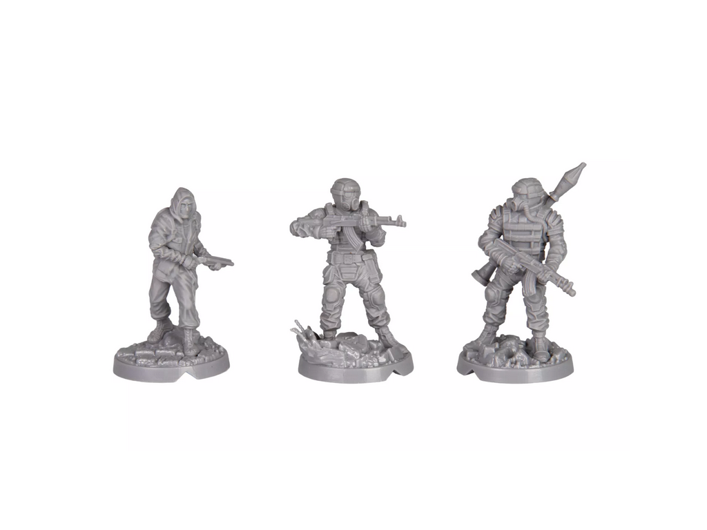 Sada detailně zpracovaných figurek nepřátel nahrazuje kartonové komponenty ze základní hry Stalker: Desková hra.