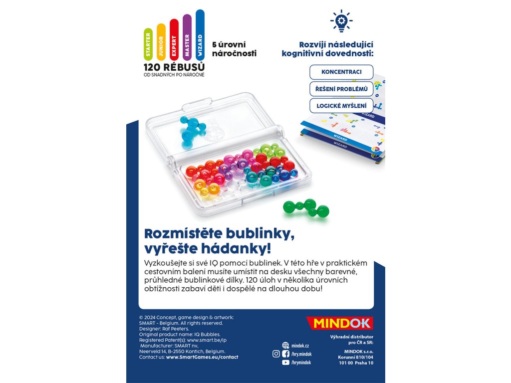 Hra začíná tím, že si vyberete zadání z knížky a umístíte na desku již určené startovní dílky. Vaším cílem je následně umístit na desku všechny zbývající dílky. IQ Bubliny nabízí kompaktní balení, které je ideální pro zábavu na cestách, a díky mnoha zadáním zajistí dlouhé hodiny tréninku mozku.