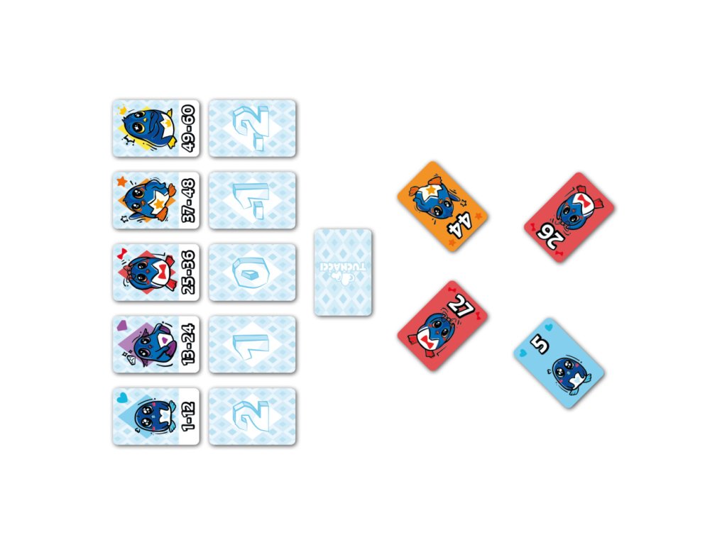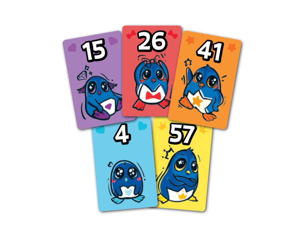 • 60 karet tučňáků: modří (1–12), fialoví (13–24), červení (25–36), oranžoví (37–48), žlutí (49–60)